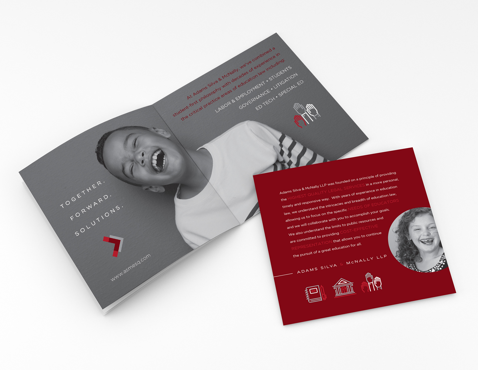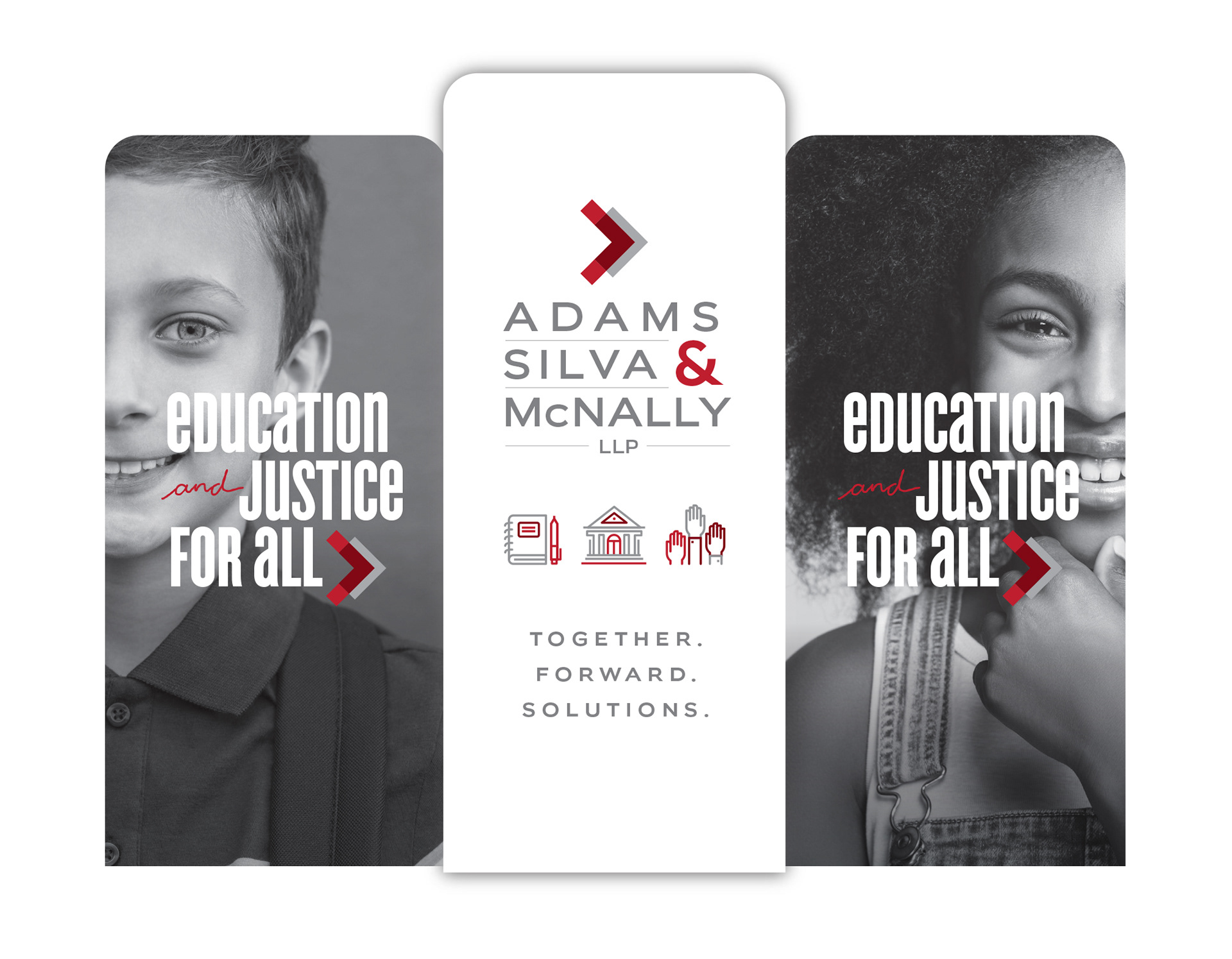 Exceptional & equitable education is at the forefront for Adams Silva & McNally, a law firm specializing in education law. We developed an identity system for them that reflects both the seriousness of their purpose and the passion of their vision.