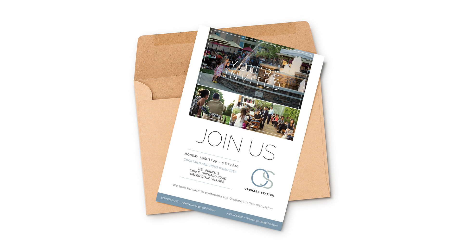 Orchard Station was a visionary city center/transit hub originally planned for the thriving South Denver market. We worked with the developer to create a marketing campaign that introduced the project to the community, potential tenants and city leaders.